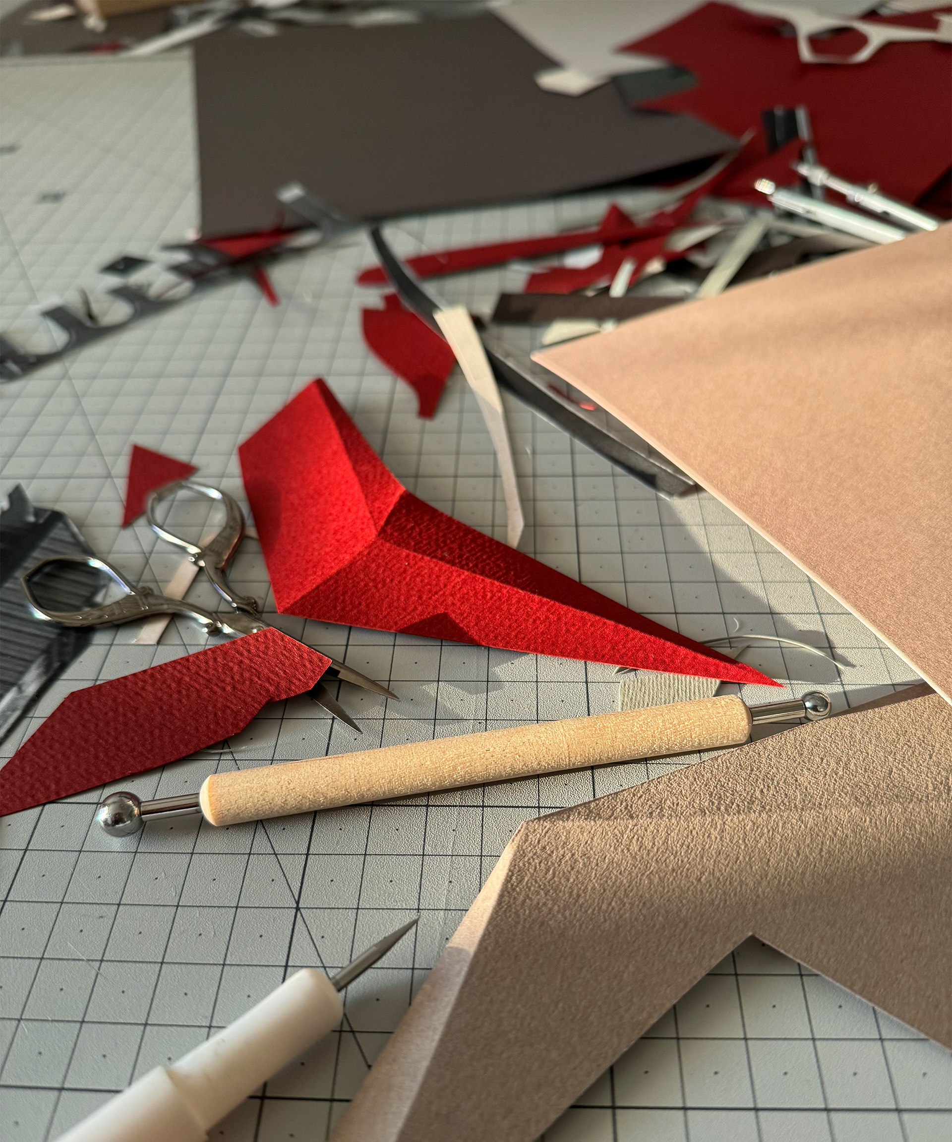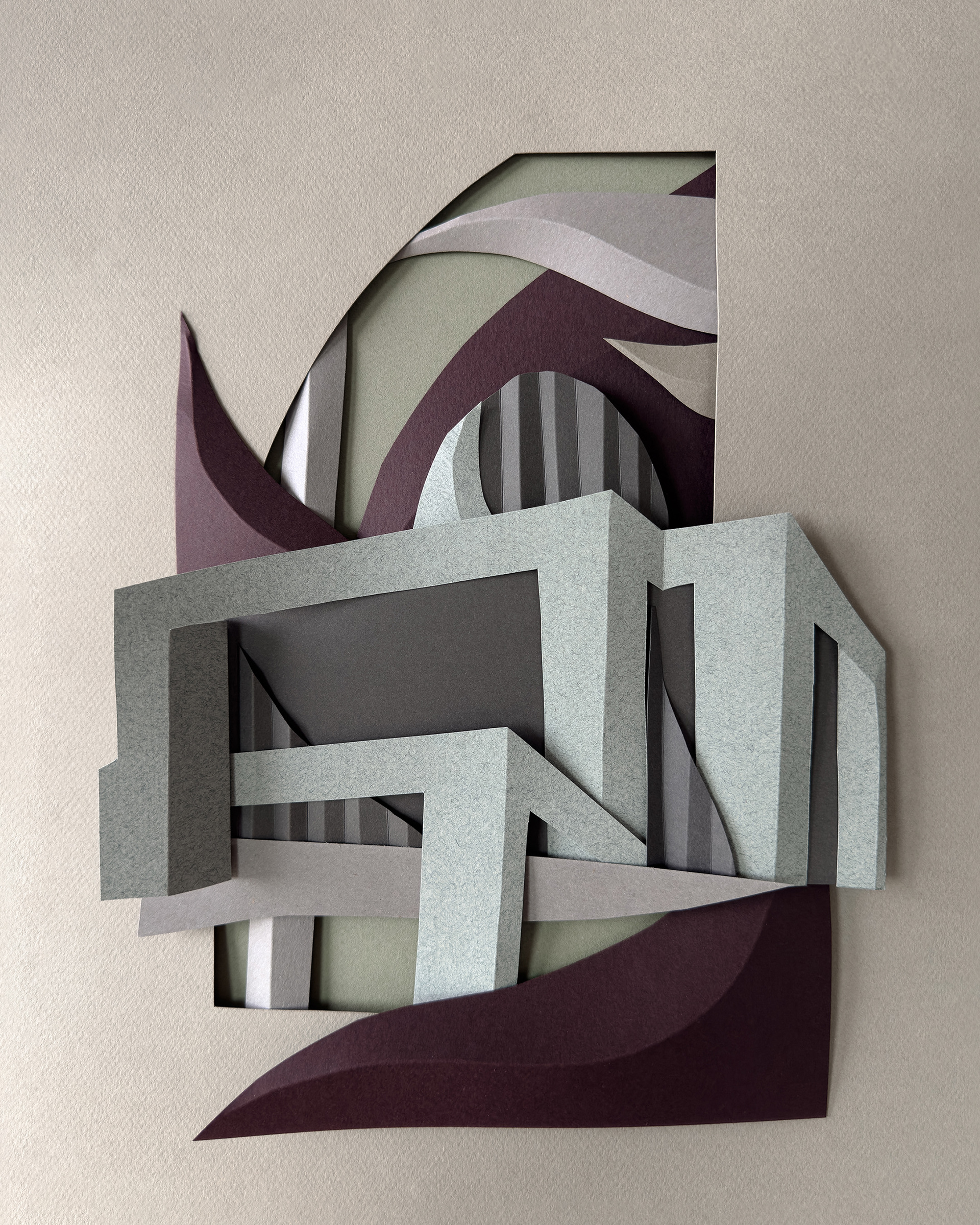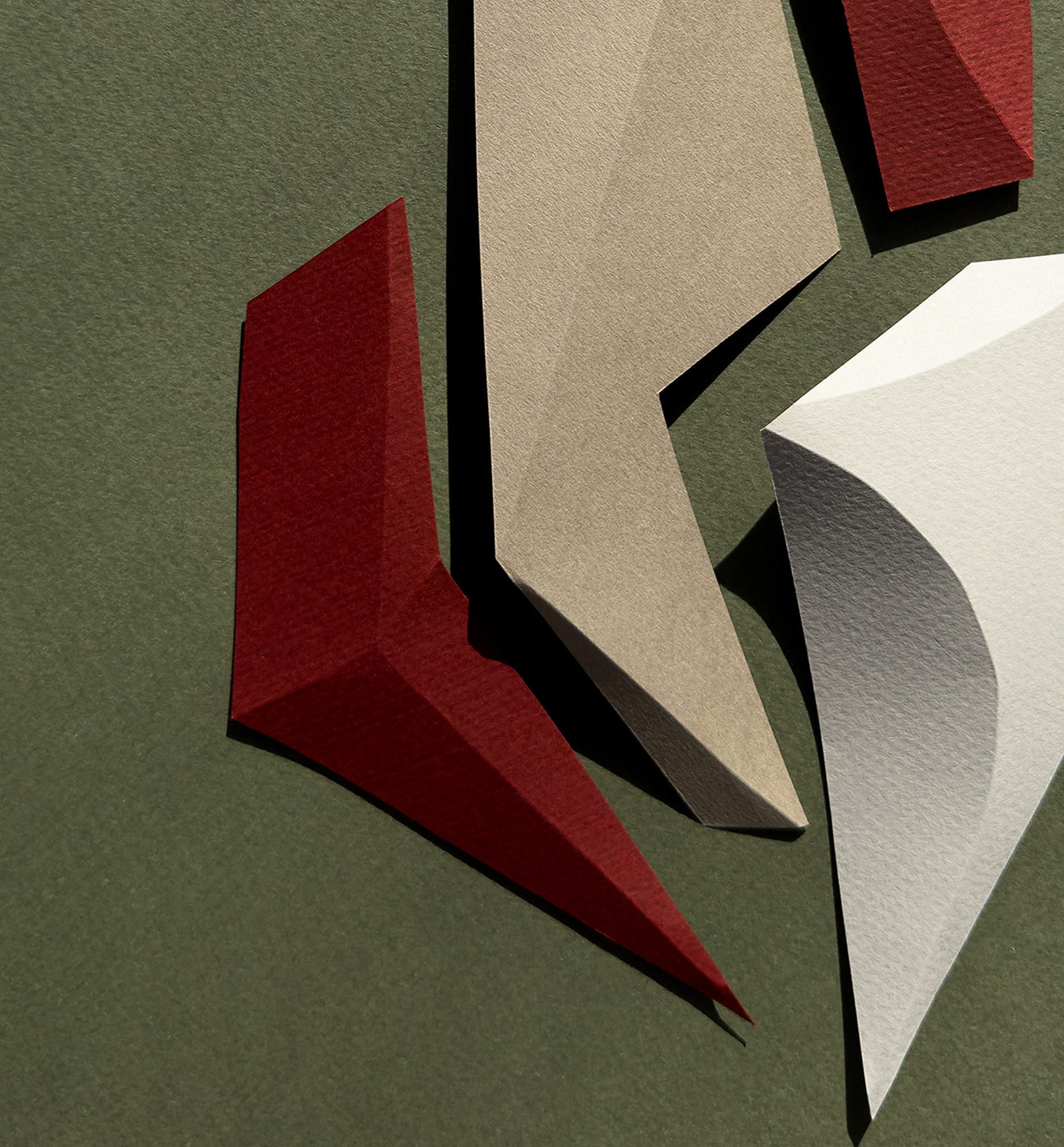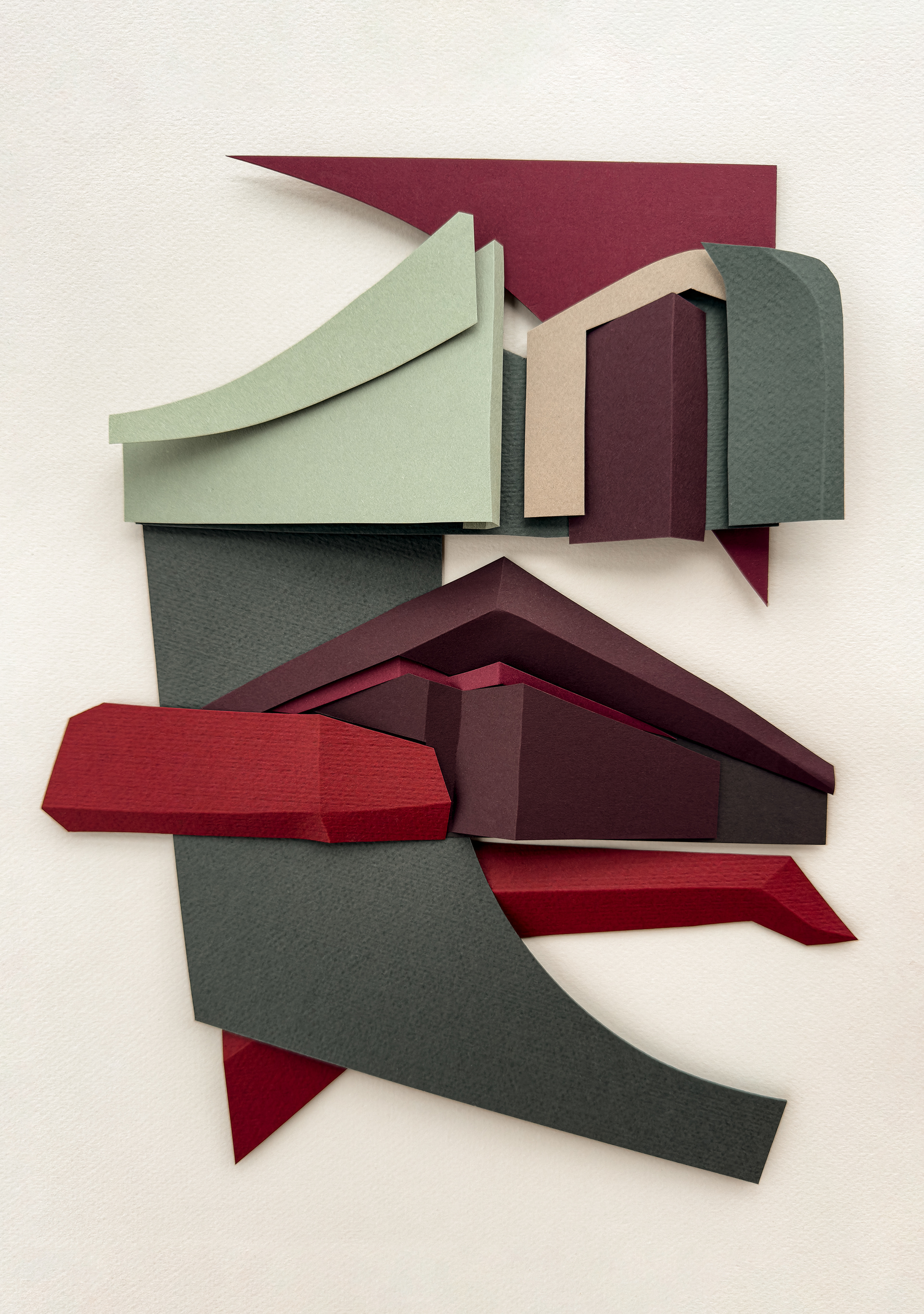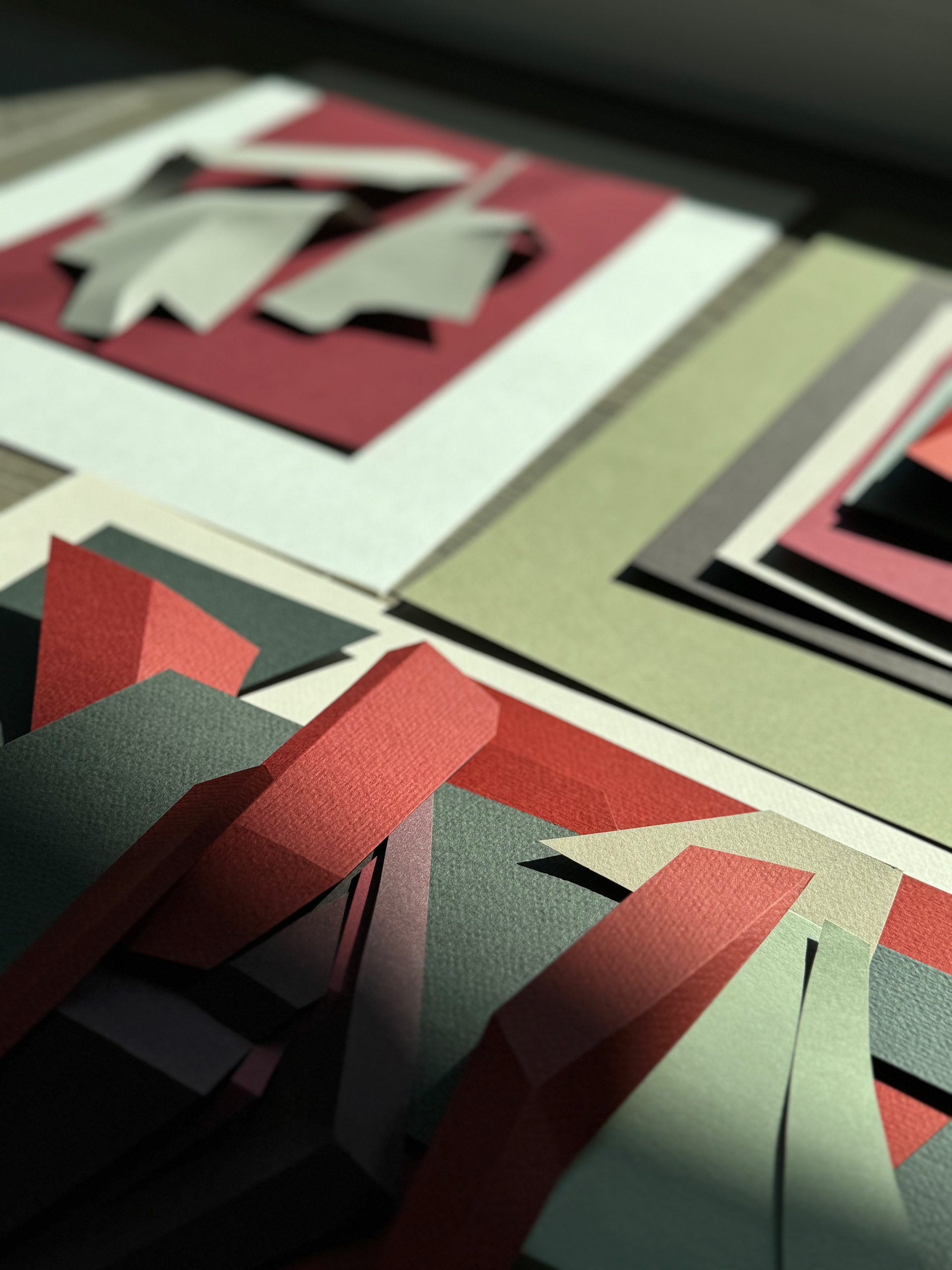 Each composition begins as a flat sheet of paper, but the creative vision behind it is spatial from the start. I work by hand, often from a loose sketch, shaping forms through cuts and folds. These sculptural structures catch light and shadow, giving depth and rhythm to otherwise flat surfaces. I deliberately avoid modular or mathematical precision – instead, I aim for fluidity and gesture, allowing each form to feel dynamic and intuitive. Though I have an analytical mindset, these works are not calculated – they emerge through a process that is both instinctive and expressive.