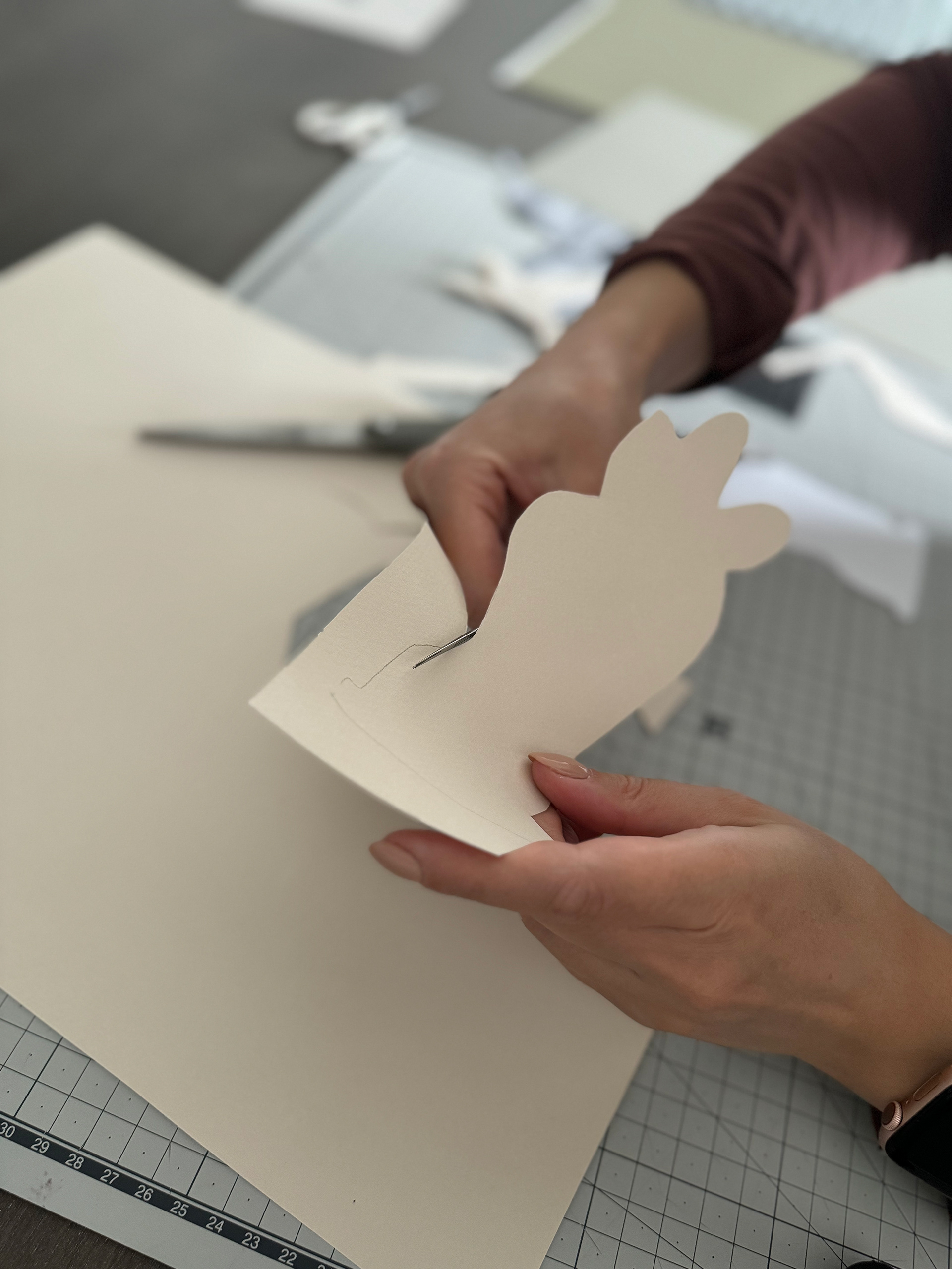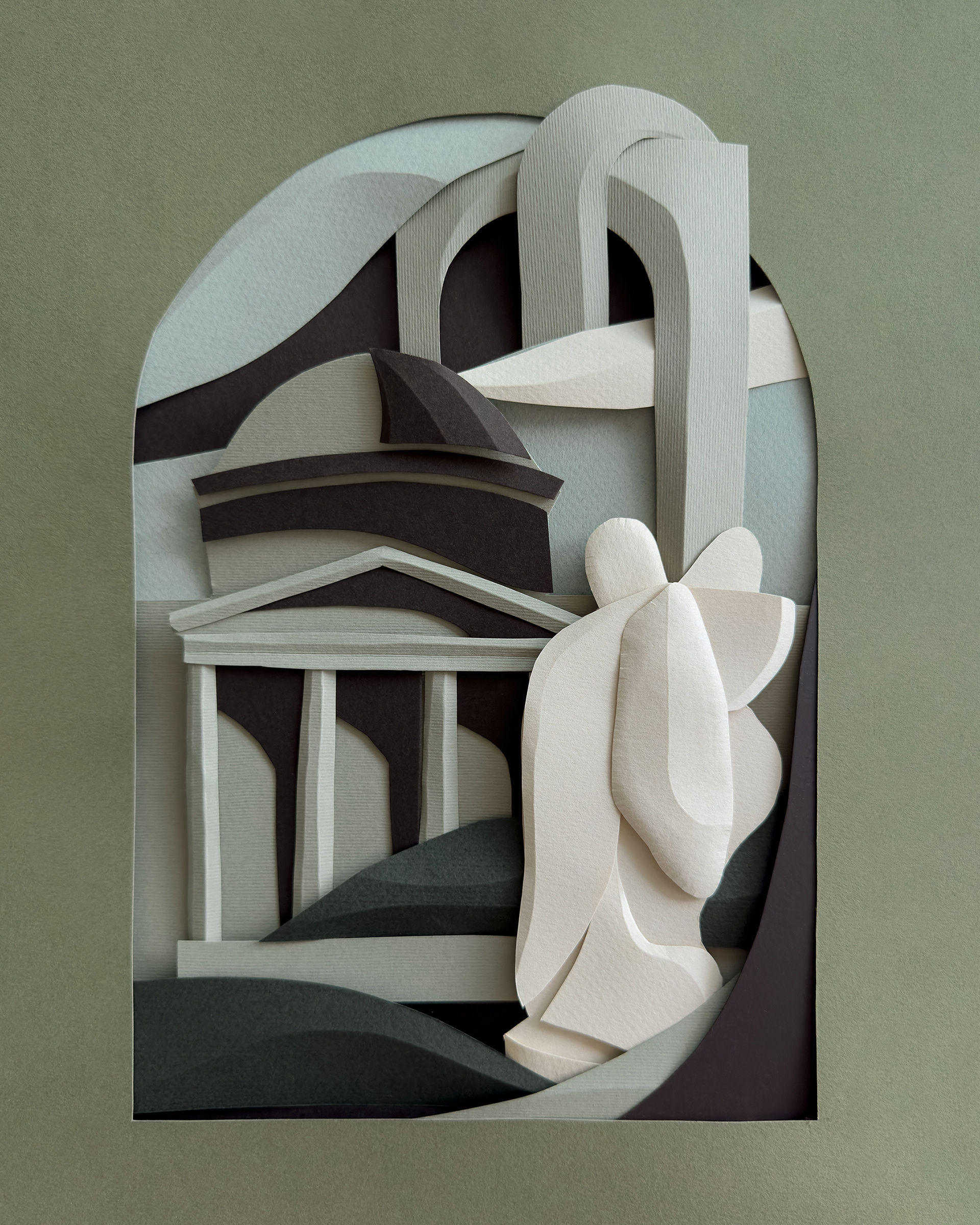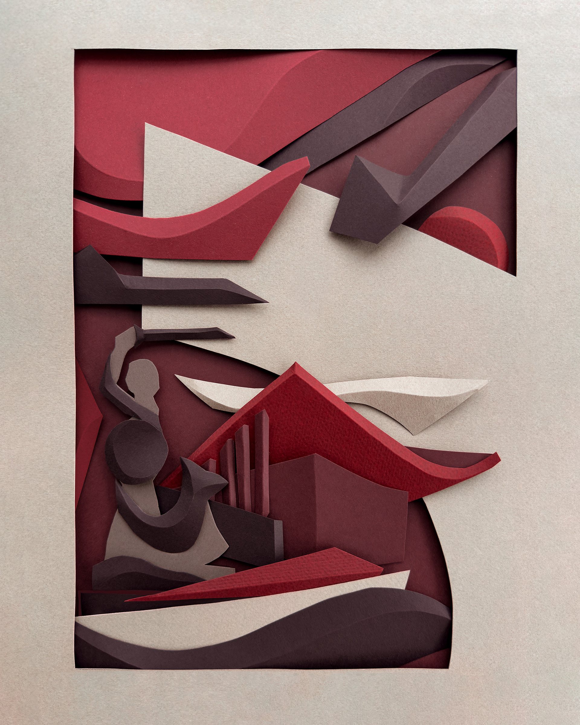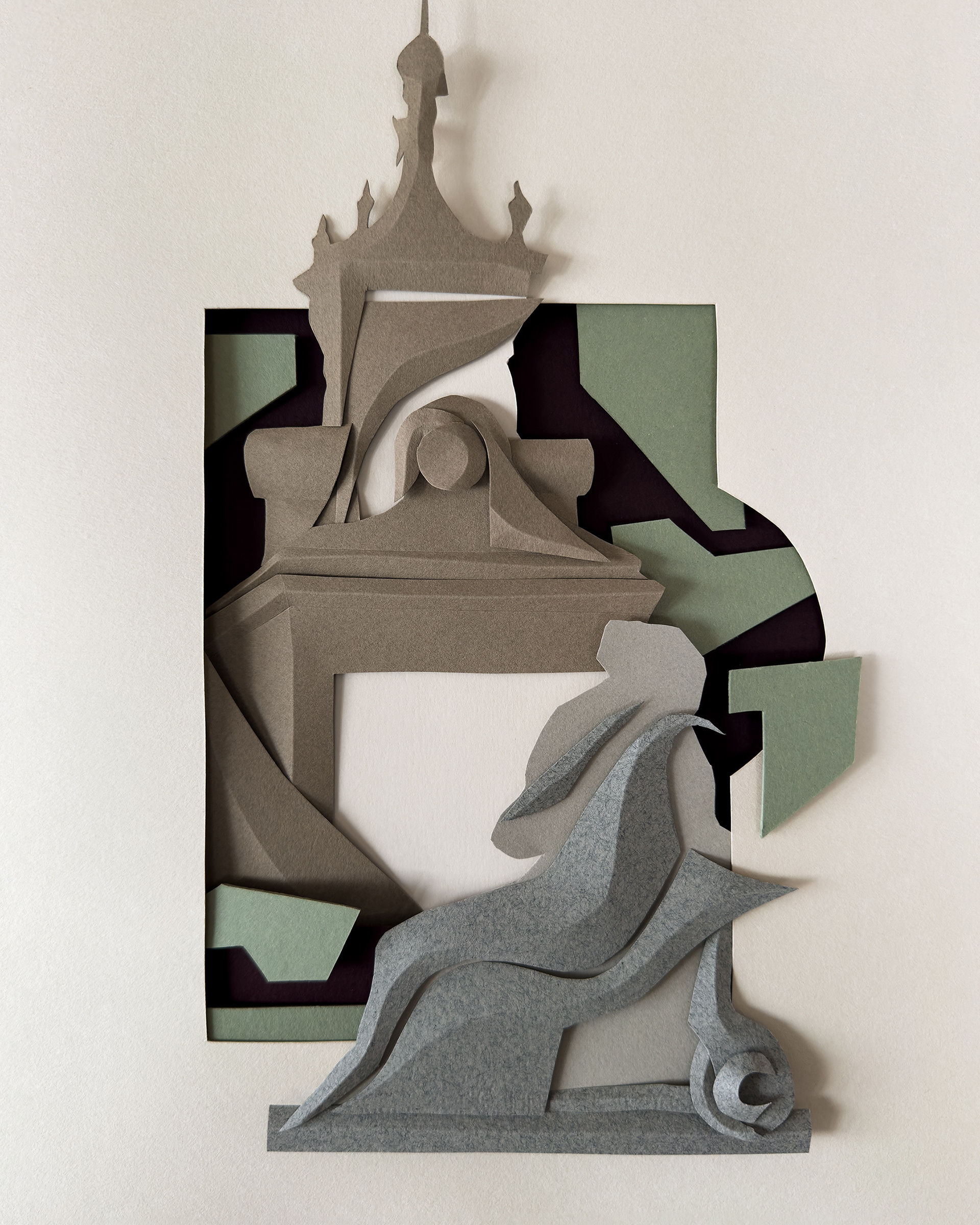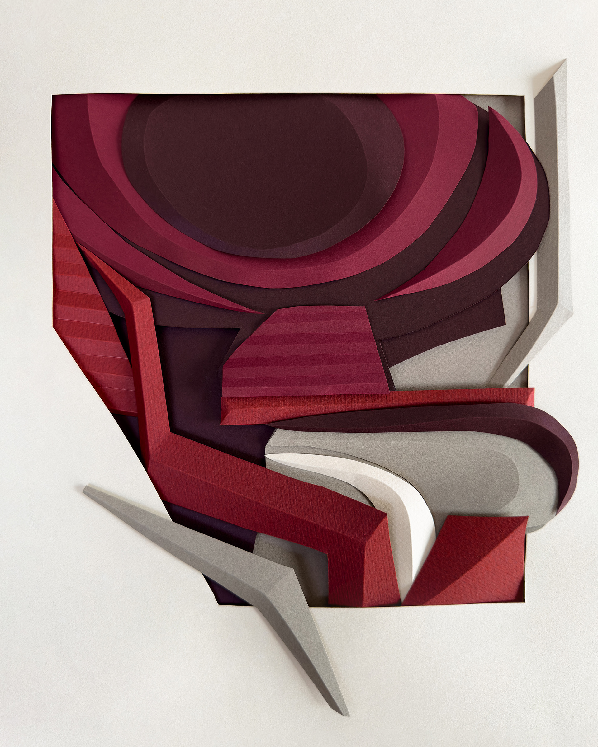 Each composition begins as a flat sheet of paper, but the creative vision behind it is spatial from the start. I work by hand, often from a loose sketch, shaping forms through cuts and folds. These sculptural structures catch light and shadow, giving depth and rhythm to otherwise flat surfaces. I deliberately avoid modular or mathematical precision – instead, I aim for fluidity and gesture, allowing each form to feel dynamic and intuitive. Though I have an analytical mindset, these works are not calculated – they emerge through a process that is both instinctive and expressive.