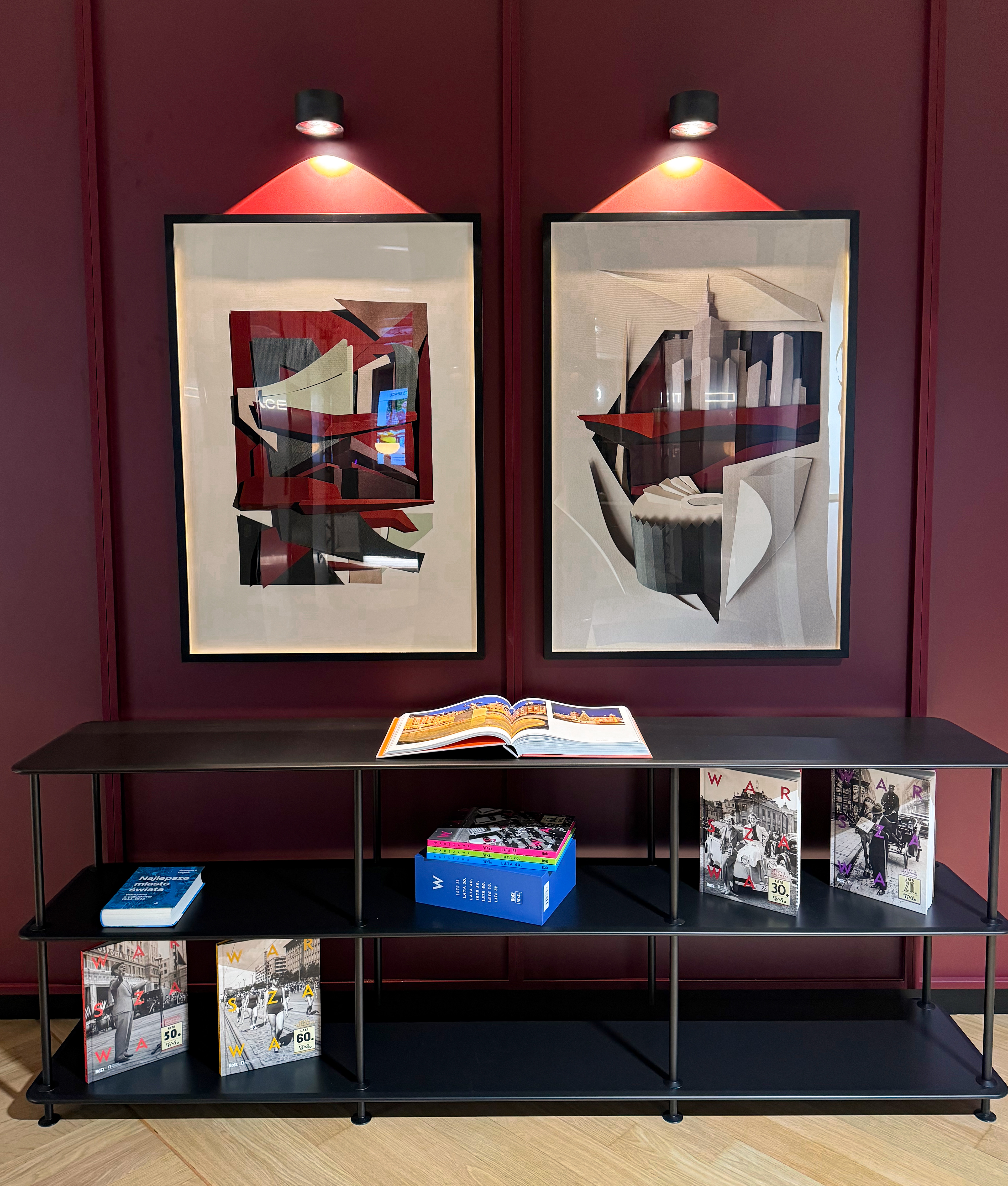 The artworks draw inspiration from various districts of Warsaw, each with its own distinctive atmosphere and architectural identity. Among the featured areas are Śródmieście, Żoliborz, Praga Północ and Południe, Wola, Ochota, Wilanów, and Mokotów. The pieces reflect both iconic landmarks and more subtle urban details, capturing the essence of each neighborhood. This layered approach allows the viewer to experience the city not only through its skyline, but also through rhythms, shapes, and textures that define its everyday visual language.
