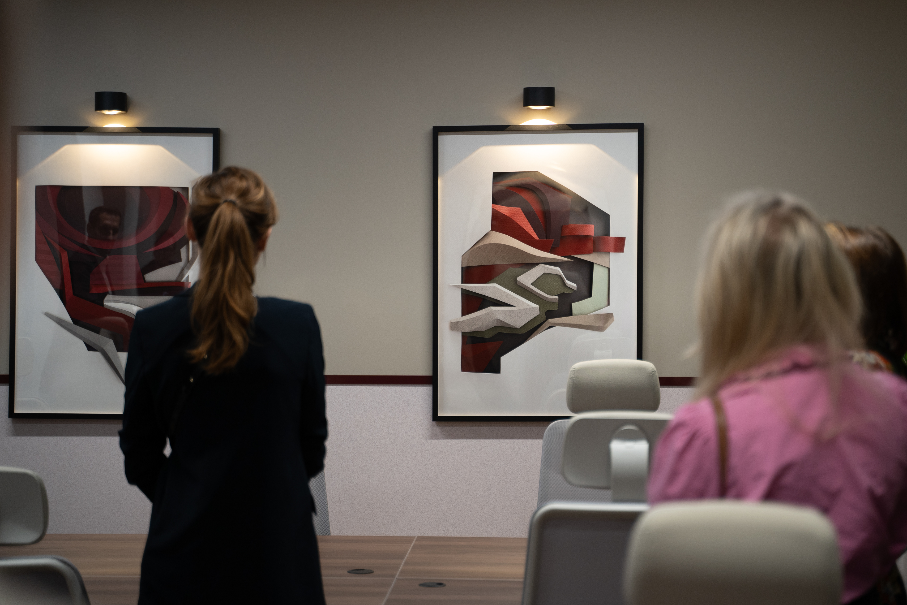 The artworks were designed to complement and enhance the interior architecture of CitySpace Novo. In the meeting rooms, the pieces take on a more figurative character, referencing recognizable elements from specific districts. In the corridors and shared areas, the works become more abstract—compositions that echo architectural rhythms, creating a visual dialogue with the space. The collection is not only decorative, but also functional: it brings texture, identity, and a sense of narrative to the work environment, encouraging reflection, inspiration, and a deeper connection with the city outside.